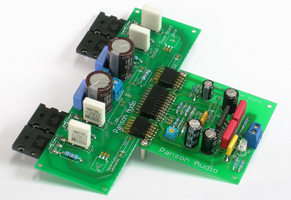 Initial series power amplifiers use plug-in driver and power boards to ease boards swapping for evaluating sonic characteristics of different output configurations.